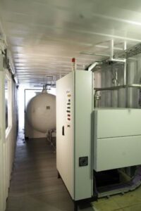 El modelo Container es una sala de calderas móvil con las medidas de un contenedor marítimo de 20 pies estándar o adaptable a otras dimensiones. El contenedor está equipado con todos los elementos necesarios de una sala de calderas completa.